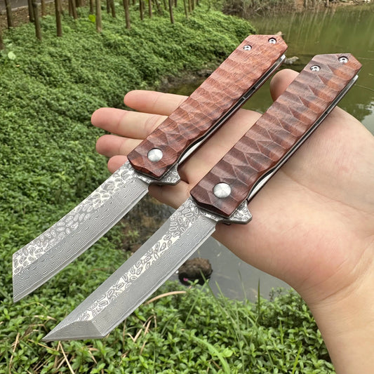 Ce couteau Bushcraft Damas DM033 est un outil robuste et tranchant, idéal pour les activités en forêt et les aventures outdoor. Il est doté d’une lame en acier Damas VG10 de 8.5 cm et d’un manche en bois de rose, offrant une longueur totale de 21.5 cm. Sa dureté élevée garantit une excellente résistance. Il est parfait pour couper du bois, de la corde, et pour diverses tâches de survie. Les clients louent sa qualité, sa robustesse et son tranchant exceptionnel.